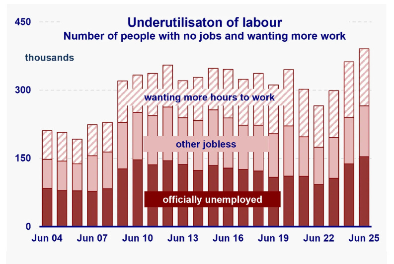 Labour underutilisation data reveals the real picture: approximately 400,000 New Zealanders are either officially unemployed, underemployed (wanting more hours), or have stopped looking for work entirely. That’s roughly one in ten working-age adults competing desperately for jobs and hours.